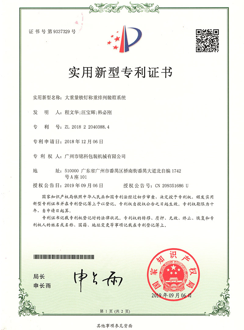 大重量铁钉称重排列装箱系统